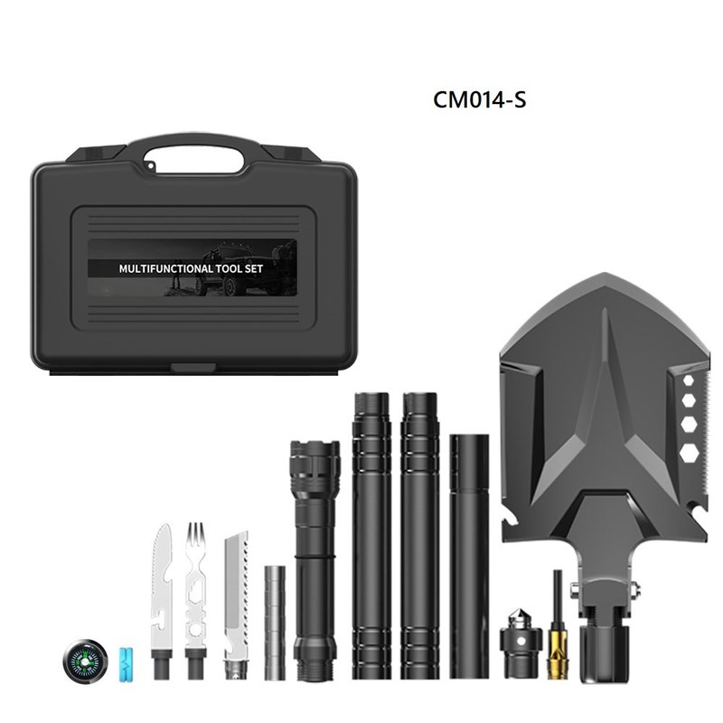 【অল-ইন-ওয়ান মাল্টিপারপাস সারভাইভাল টুল কিট】 ফোল্ডিং ক্যাম্পিং সারভাইভাল বেলচা অ্যাক্স সেটের মধ্যে রয়েছে বেলচা, কুড়াল, কাটার, করাত, কুড়াল, হুক, স্টিক, রেঞ্চ, স্ক্রু ড্রাইভার, বোতল ওপেনার, হান্টিং স্পিয়ার, হুইসেল, ফায়ার স্টার্টার, উইন্ডো ব্রেকার, স্ক্র্যাপিং ফিশ স্কেল এবং কম্পাস।ইত্যাদি। বেলচা, কাটা, কাটা, করাত, খনন, হাতুড়ি, বোতল খোলার জন্য পারফেক্ট।ক্যাম্পিং, হাইকিং, অফ-রোডিং, SUV, ব্যাকপ্যাকিং, মাছ ধরা, শিকার, বাগান করার জন্য আদর্শ, যে কোনো সময়, যে কোনো জায়গায় আপনার জন্য প্রস্তুত